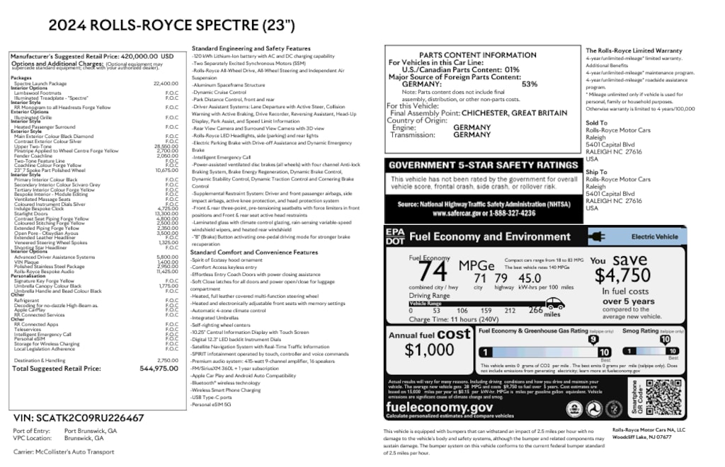 Come See this Rolls-Royce and Many More at Rolls-Royce Motor Cars Raleigh!!, A Full List of Optional Equipment can be seen by Clicking the Window Sticker Button Above!!, ABS brakes, Alloy wheels, Compass, DVD-Audio, Electronic Stability Control, Front dual zone A/C, Heated door mirrors, Heated front seats, Heated rear seats, Illuminated entry, Leather Seat Trim, Low tire pressure warning, Navigation System, Rear dual zone A/C, Remote keyless entry, Traction control.