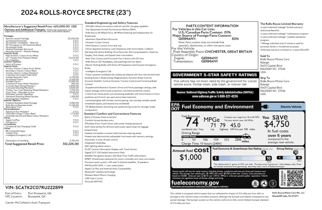Artic White 2024 Rolls-Royce Spectre AWD 1-Speed Automatic Electric Motor