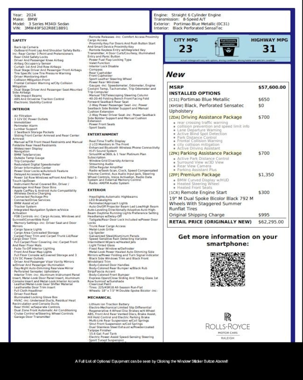 Visit Rolls Royce Motor Cars Raleigh to experience this impressive 2024 BMW M340i and discover a performance sedan supported by a dealership experience defined by professionalism, attention to detail, and exceptional service.