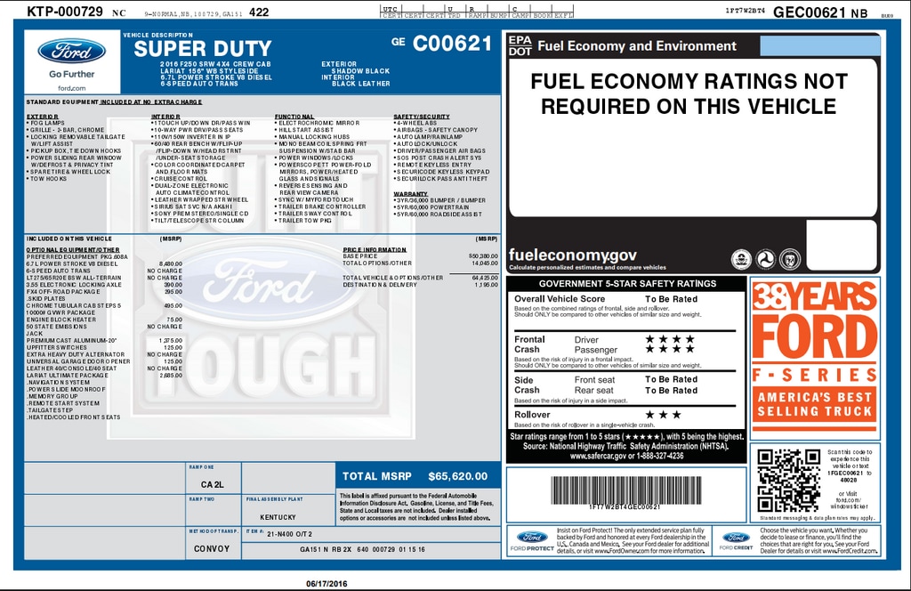 2016 Ford F-250SD Lariat Power Stroke 6.7L V8 DI 32V OHV Turbodiesel 4WD TorqShift 6-Speed Automatic with Overdrive