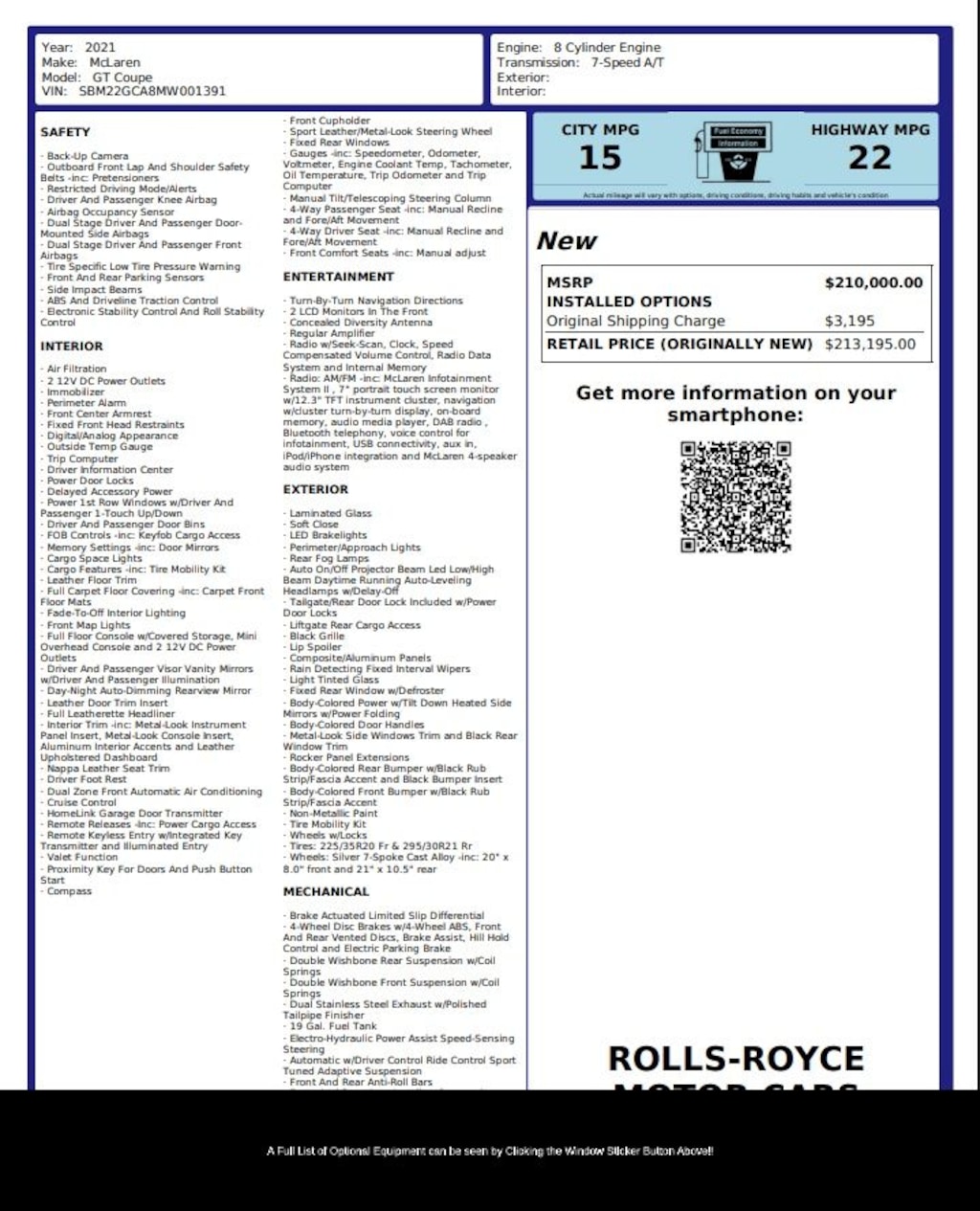 With a clean CARFAX and exceptional condition throughout this 2021 McLaren GT represents an outstanding opportunity to own a rare and desirable exotic grand tourer in Raleigh NC. Whether you seek breathtaking performance or refined comfort this McLaren delivers both with signature McLaren engineering and unmistakable style. Visit Rolls Royce Motor Cars Raleigh to experience this remarkable GT in person and explore a curated selection of luxury and exotic vehicles. Your journey begins with excellence and continues with unmatched customer care and attention to detail.