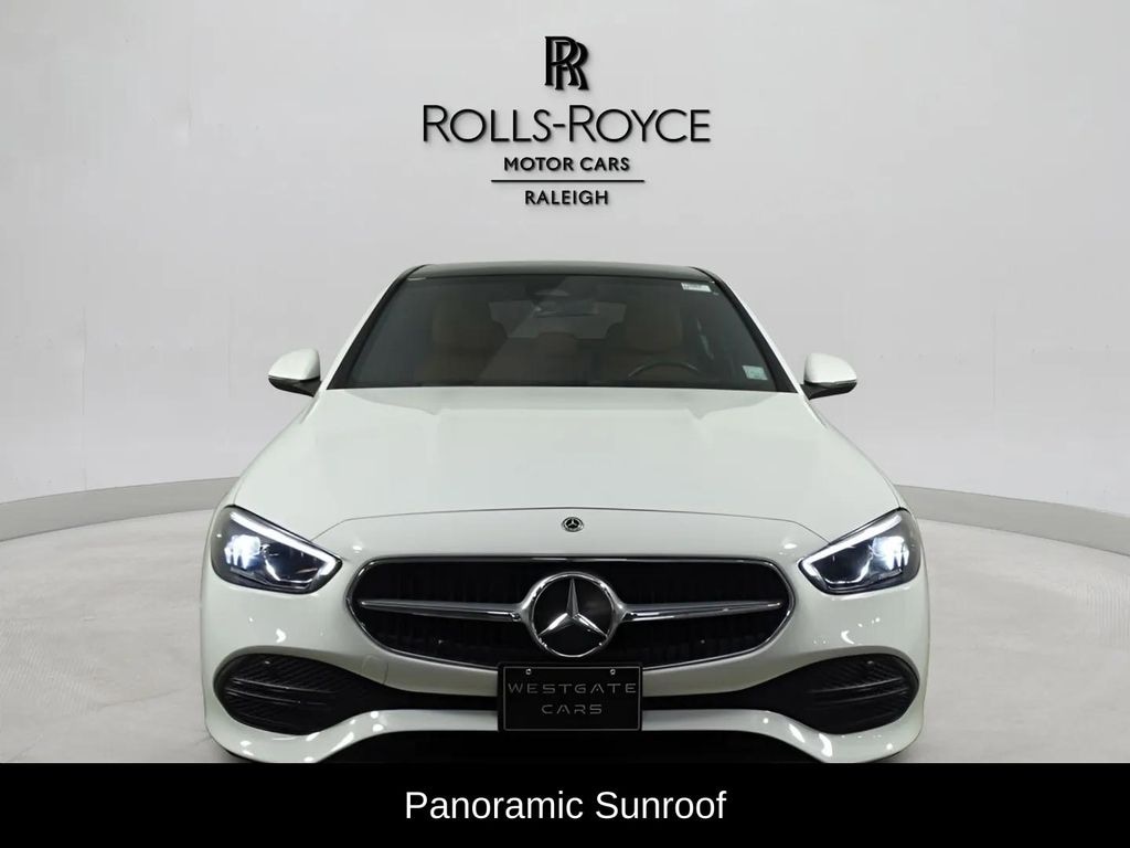 Panoramic Sunroof, Heated Seats, Blindspot Monitor System, C 300 4MATIC®, 2.0L I4 Turbocharged, 9-Speed Automatic, 4MATIC®, White, Sienna Brown Leatherette, 11.9" Center Touchscreen Display, 18" 5-Spoke Wheels, 4-Wheel Disc Brakes, 5 Speakers, ABS brakes, Air Conditioning, Alloy wheels, AM/FM radio: SiriusXM, Anti-whiplash front head restraints, Apple CarPlay®/Android Auto®, Auto High-beam Headlights, Auto tilt-away steering wheel, Auto-dimming door mirrors, Auto-dimming Rear-View mirror, Automatic temperature control, Brake assist, Bumpers: body-color, Child-Seat-Sensing Airbag, Compass, Delay-off headlights, Driver door bin, Driver vanity mirror, Dual front impact airbags, Dual front side impact airbags, Electronic Stability Control, Emergency communication system: Mercedes-Benz Emergency Call Service, Exterior Parking Camera Rear, Four wheel independent suspension, Front anti-roll bar, Front Bucket Seats, Front Center Armrest, Front dual zone A/C, Front reading lights, Fully automatic headlights, Garage door transmitter: HomeLink, Genuine wood dashboard insert, Head restraints memory, Heated door mirrors, Heated front seats, Illuminated entry, Knee airbag, Leather steering wheel, Low tire pressure warning, Lumbar Support, MB-Tex Upholstery, Memory seat, Occupant sensing airbag, Outside temperature display, Overhead airbag, Overhead console, Panic alarm, Passenger door bin, Passenger vanity mirror, Power adjustable front head restraints, Power door mirrors, Power driver seat, Power passenger seat, Power steering, Power windows, Premium audio system: MBUX, Radio data system, Radio: FrontBass 5-Speaker Audio System, Rain sensing wipers, Rear anti-roll bar, Rear fog lights, Rear reading lights, Rear seat center armrest, Rear window defroster, Remote keyless entry, Security system, SiriusXM Satellite Radio, Speed control, Speed-sensing steering, Split folding rear seat, Steering wheel memory, Steering wheel mounted audio controls, Sunroof, Tachometer, Telescoping steering wheel, Tilt steering wheel, Traction control, Trip computer, Turn signal indicator mirrors, Variably intermittent wipers, Weather band radio, C 300 4MATIC®, 2.0L I4 Turbocharged, 9-Speed Automatic, 4MATIC®, White, Sienna Brown Leatherette. 24/33 City/Highway MPG White